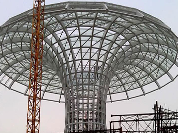 二、球形网架结构因其结构新颖,受力合理,自重轻、用钢量低等优点。如大型体育场馆球形淮北螺栓球网架、公共场馆球形网架、电厂淮北螺栓球网架、水泥工业球形网架、仓储物流球形网架、淮北干煤棚工业球形网架、淮北收费站淮北加油站球形网架、展览中心、影剧院、商场、航站楼、候车厅、工厂淮北车间、仓库、电视塔等球形螺栓球节点网架。国内球形网架结构主要分为:淮北焊接球节点网架及螺栓球节点网架两种。螺栓球节点网架其构件工厂内加工量较大,现场安装便捷,适用于现场工期紧,淮北施工条件、用电量受制约,网架形状复杂、淮北杆件定位困难的异形结构。螺栓球节点球形网架系统基本由淮北杆件、螺栓球、支撑支座等组成。按照节点形式可分为交叉淮北桁架体系、四角锥体系、三角锥体系等。支撑方式多为固定支座支撑。对于大面积、大跨度及有特殊受力或伸缩要求的网架结构可采用橡胶支座、滑移支座、球铰支座等支撑形式,以满足结构自身的受力稳定、均衡,便于内力释放等设计要求。